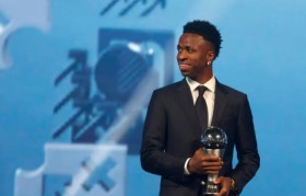 体坛周报全媒体记者小中报道 12月17日,维尼修斯当选世界足球先生。在评选中,维尼修斯得到48分排...